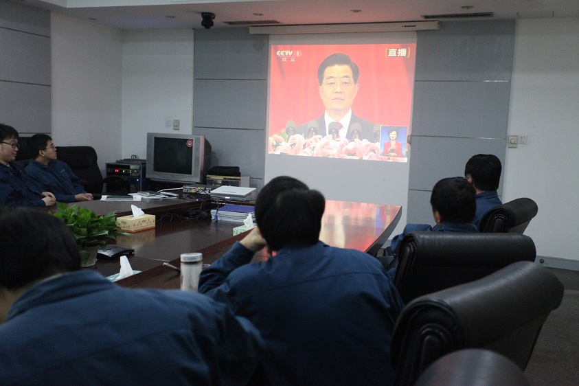11月8日上午9點不到,集團公司行政大樓三樓會議室早已座無虛席,當天在公司的行政支部全體黨員干部早就聚集在一起,準備通過會議室內的電視顯示屏,觀看即將在北京人民大會堂召開的中國共產黨第十八次全國代表大會的現場直播。