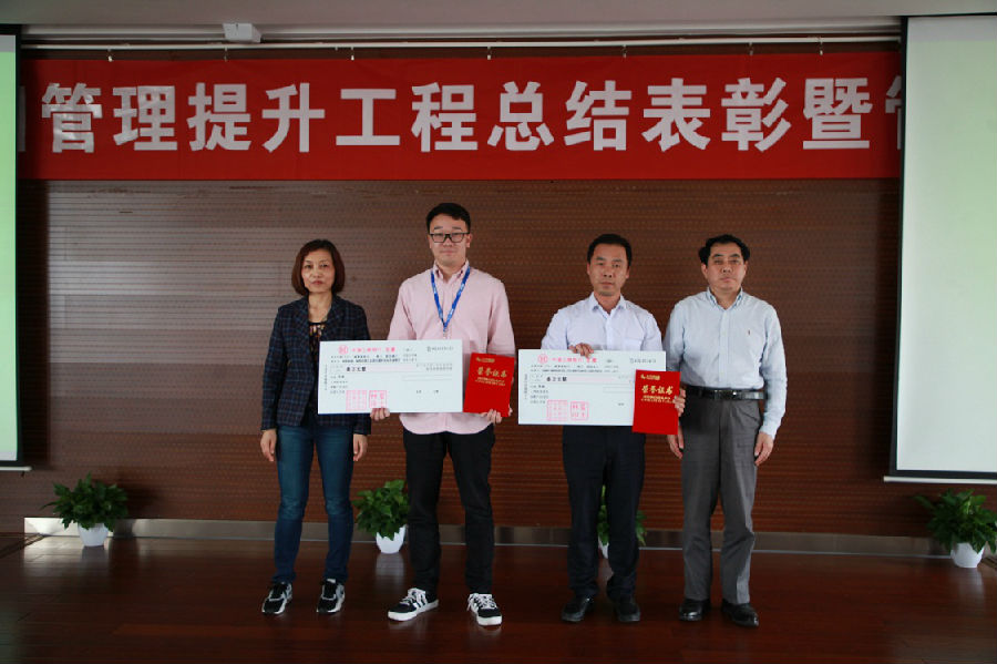 會上,云峰新材、華源顏料兩個管理提升工作領導小組受到集團公司表彰獎勵,《電磁鐵代替人工清桶——降本提質、強化安全》等26個成果項目分獲管理提升第三段管理提升優秀成果一、二、三等獎和鼓勵獎。集團公司領導夏士林、吳夢根、王菊平、朱根法、王鋒、鮑希楠等分別為優秀團隊、優秀成果獎獲獎項目組頒獎。